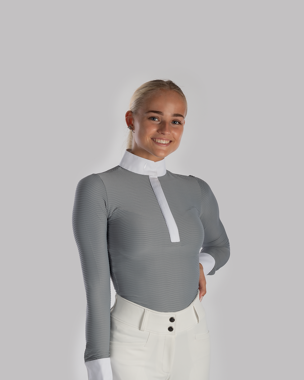 Waffle Zip Long Sleeve Show Shirt in Grey