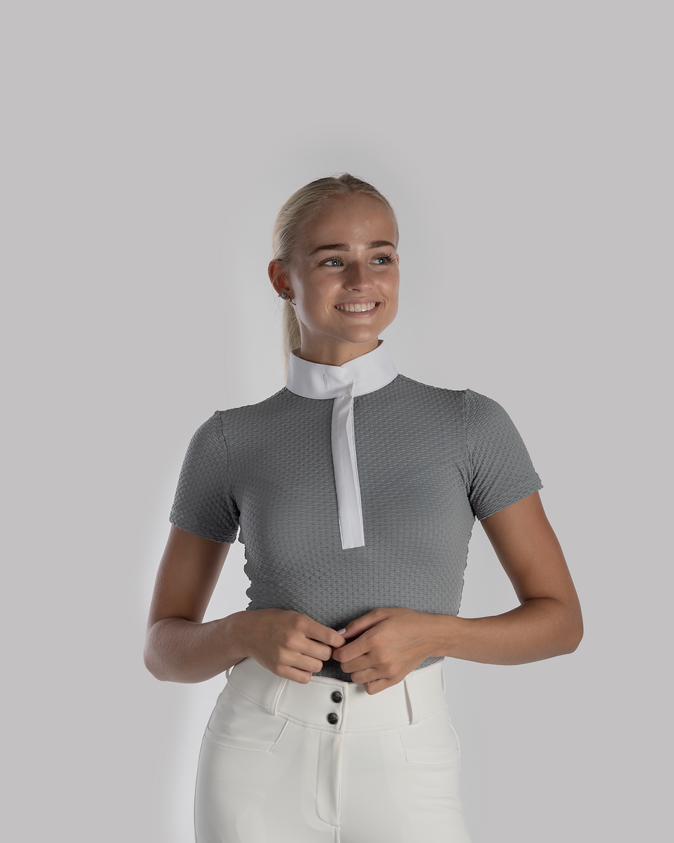Waffle Zip Short Sleeve Show Shirt in Grey