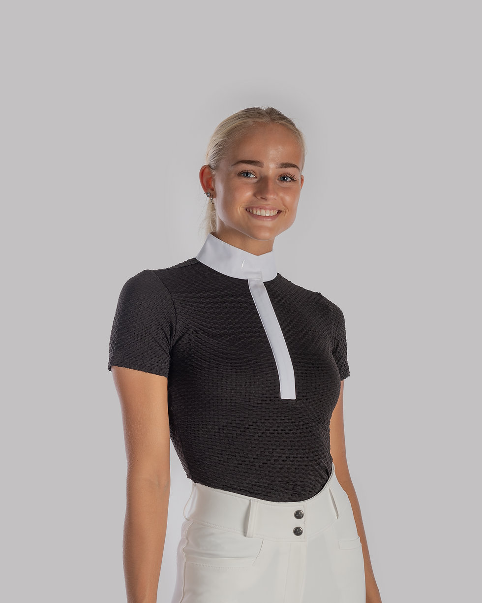 Waffle Zip Short Sleeve Show Shirt in Anthracite